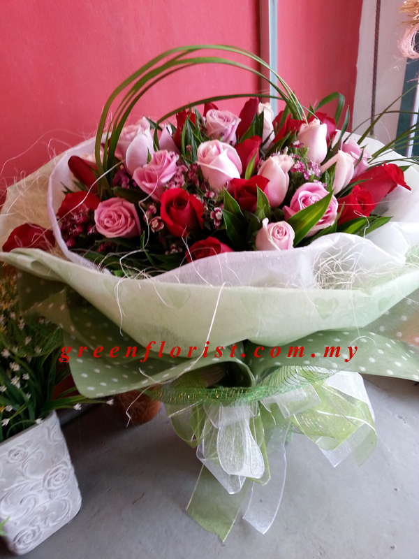 24 Stalks Red Mix Pink Roses Medium 228 51
