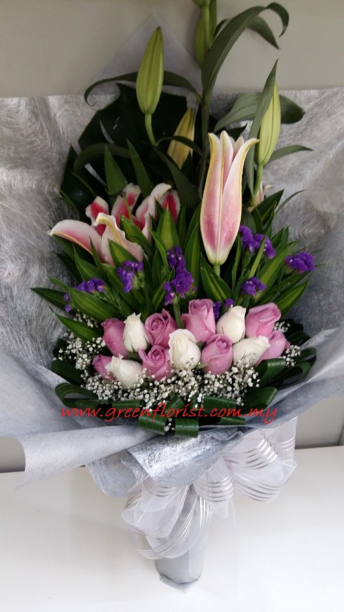 Yellow Lily Mix Purple & White Roses One Size Only 198 44