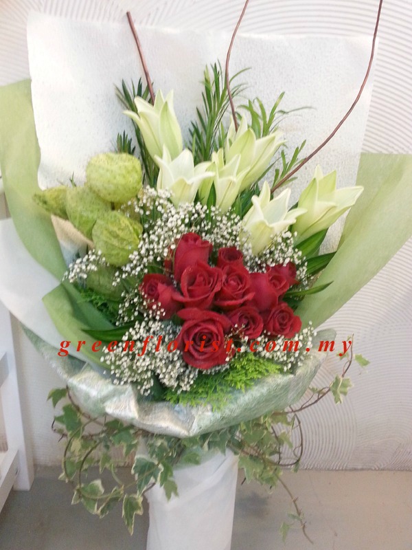 HB 021 - Madonna Lily Mix Red Roses and Fruit Casa