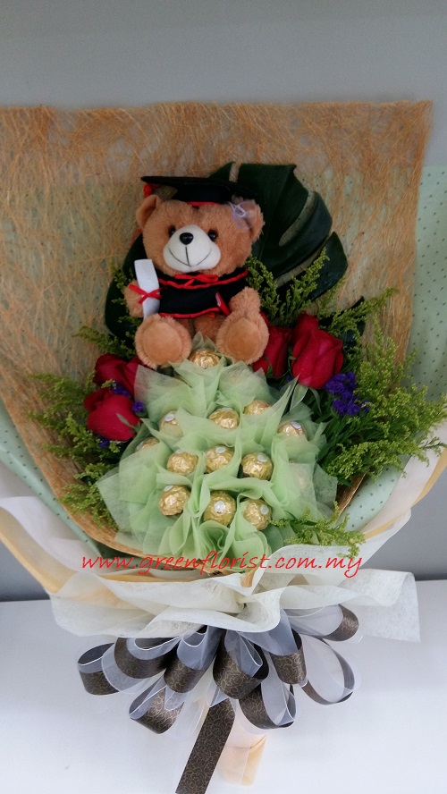 6 Stalks Red Roses Mix Ferrero Rochers Chocolates + Bear One Size Only 238 53