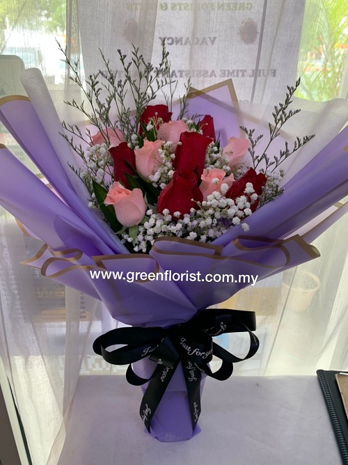 12 Stalks Red Mix 12 Stalks Pink Roses with Baby Breath Medium 238 53