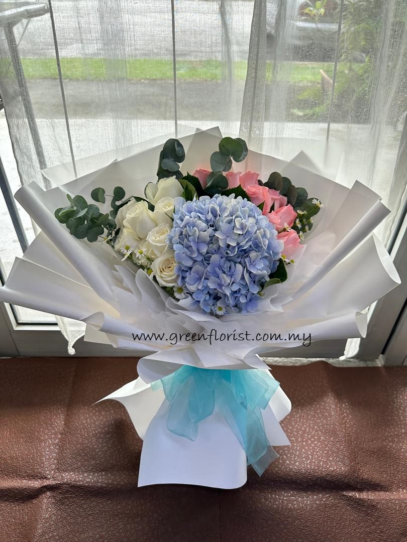 HB122 - White & Pink roses Mix Blue hydrangea RM208