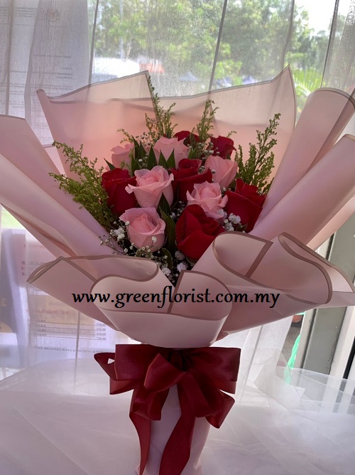12 Stalks Red Roses Mix Pink Roses with Baby Breath Small 148 33