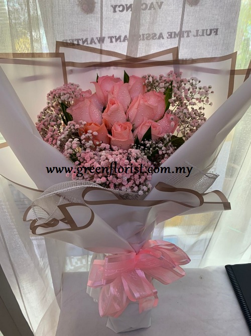 HB 12 stalks pink roses mix pink babybreath one size 158 35